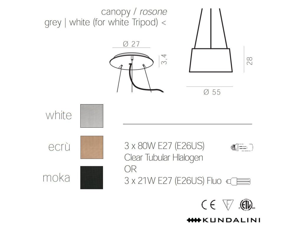 Zdroj 3x80W E27(není součástí osvětlení), 230V, IP20